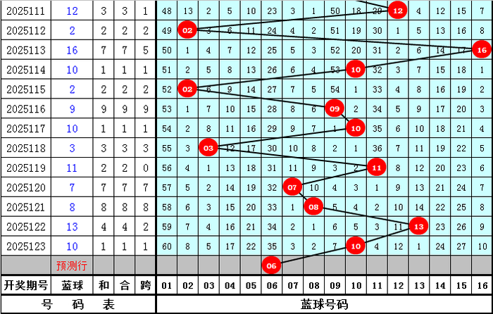 本期蓝球瞻望出当今:06、08、11、12、13之中,蓝球绝杀8码:01、02、04、05、09、10、14、16。